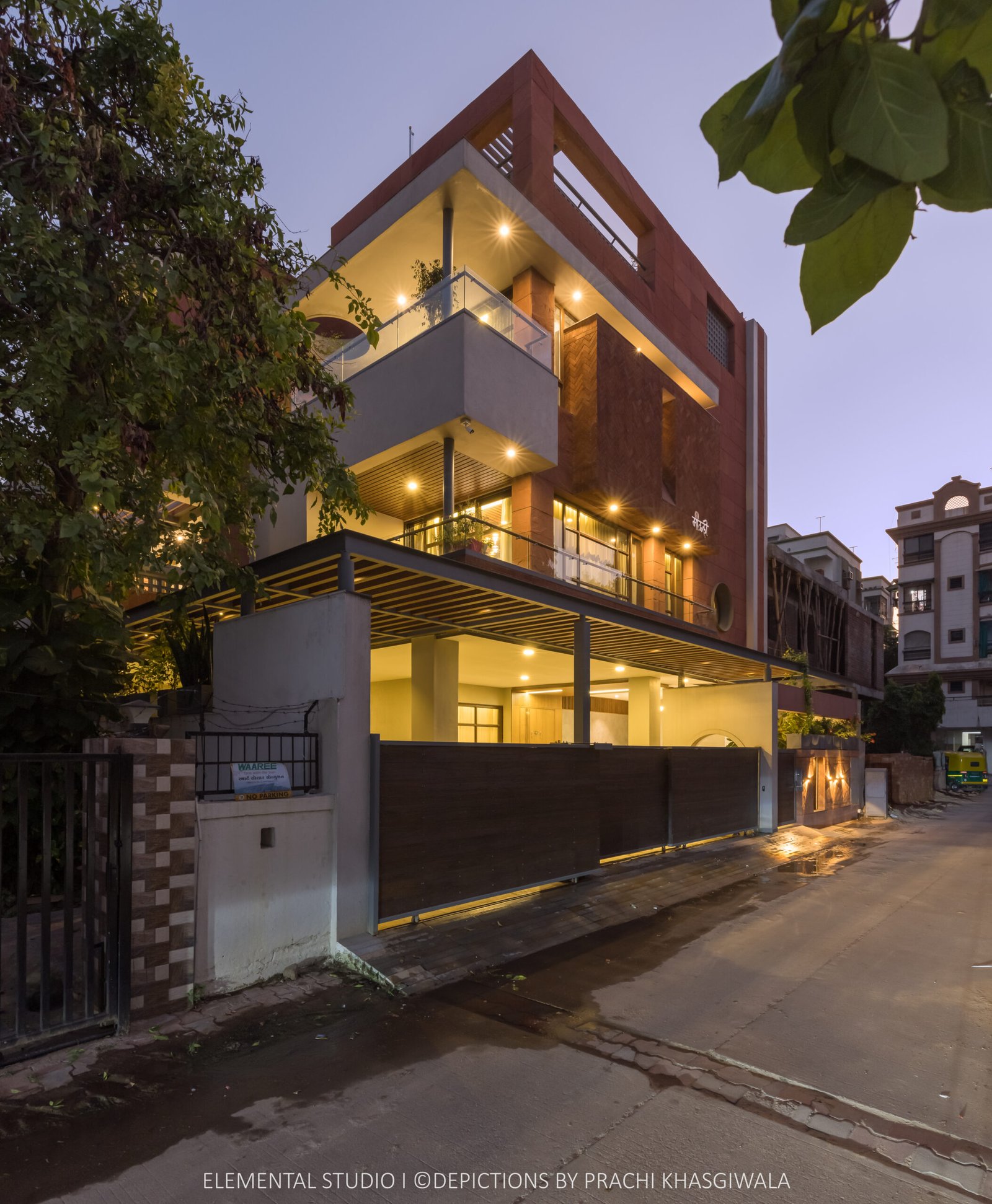 Mouli Villa showcases an impeccable blend of architectural prowess and exquisite design. The villa's architecture embraces clean lines and minimalist aesthetics, creating a sense of modern sophistication. The Residential bungalow of the spatial arrangement of 3 stories high, with the ground floor as parking & leisure. The contemporary design of the house with stone & brick cladding will aesthetically make a bold statement. The terrace garden and wide balcony makes the bedroom space a better space for interactions and family get-together. The double-height dining area is connecting features for upper floors, the space out a family living, dining with kitchen give the whole open planning concepts, makes the space bigger and visually open. The designed terraces at different levels give interesting space for leisure.